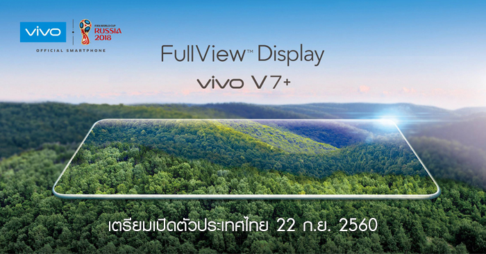 วีโว่ ประเทศไทย เตรียมเปิดตัว Vivo V7+ สมาร์ทโฟนหน้าจอไร้ขอบ วันที่ 22 ก.ย. 60