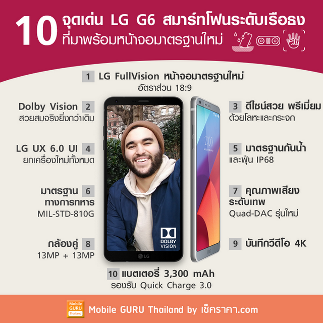 10 จุดเด่นของ LG G6 จะเห็นว่าสมาร์ทโฟนรุ่นนี้ไม่ธรรมดาเลยทีเดียว