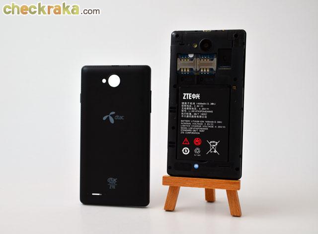 เมื่อเปิดฝาหลังจะพบกับแบตเตอรี่ขนาด 1,400 mAh ช่องใส่ซิม 2 ช่อง และช่องการ์ด MicroSD