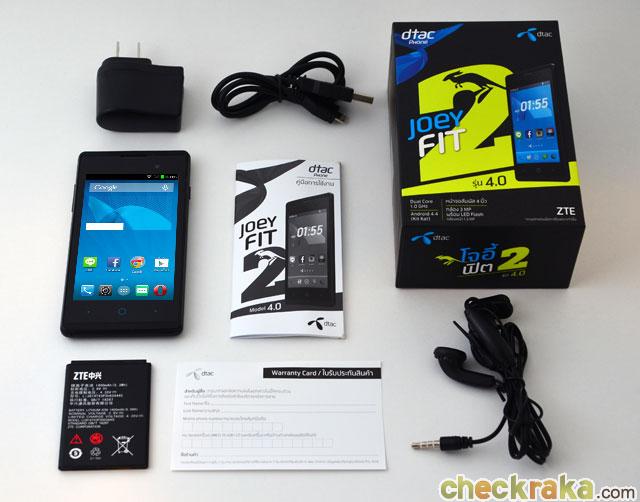 โทรศัพท์มือถือสมาร์ทโฟน dtac Phone Joey Fit 2 4.0 มาพร้อมคุณสมบัติมากมายในราคาไม่ถึง 2 พันบาท เช่น ตัวเครื่องที่ผลิตโดยบริษัท ZTE ถูกออกแบบอย่างสวยงาม มีขนาดกะทัดรัดพกพาสะดวก, หน้าจอสัมผัสขนาดใหญ่ 4.0 นิ้ว ความละเอียด WVGA (800 x 480) ที่รองรับการรับชมภาพยนตร์ และเว็บไซต์ได้เป็นอย่างดี, ใช้ระบบปฏิบัติการ Android เวอร์ชั่น 4.4 KitKat