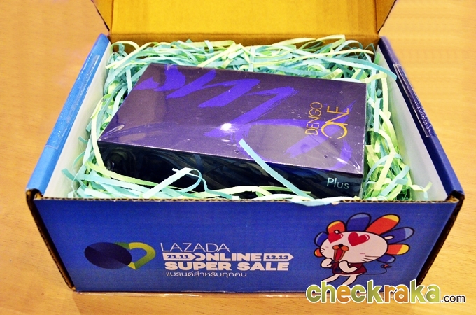 สมัยนี้ไม่ต้องออกไปเดินเลือกซื้อมือถือให้มันเมื่อยตุ้มกันแล้ว เพราะมีเว็บไซต์ซื้อขายออนไลน์บริการดีๆ ให้เราเลือกกันแล้ว อย่างผู้เขียนเองที่เลือกใช้บริการจาก Lazada อยู่เป็นประจำ ครั้งนี้ก็เช่นกันที่เลือกซื้อ Dengo One Plus กับทาง Lazada สั่งปุ๊บ ของก็ส่งตรงถึงบ้านพอดี อย่างที่เห็นกัน คราวนี้มาเป็นกล่องสีฟ้าๆ น้ำเงินๆ บนกล่องจะมีคำว่า "พบความสุขในทุกกล่อง" เปรียบกับเราได้กล่องความสุขมาจาก Lazada นั่นเอง ว้าว ...