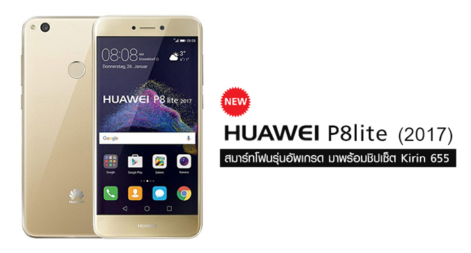 Huawei P8 Lite (2017) เป็นสมาร์ทโฟนระดับกลาง มาพร้อมหน้าจอ IPS ขนาด 5.2 นิ้ว ความละเอียด Full HD 1080P, วัสดุเป็นกระจกดูแวววาวสวยงาม ดูแตกต่างจากสมาร์ทโฟนตระกูล P Lite Series รุ่นก่อนๆ มากทีเดียว ในส่วนชิปเซ็ตมาพร้อมชิปเซ็ต HiSilicon Kirin 655, CPU Octa-core (4x2.1 GHz Cortex-A53 & 4x1.7 GHz Cortex-A53), GPU Mali-T830MP2, RAM 3GB, หน่วยความจำ 16GB, เพิ่ม Micro SD Card ได้สูงสุด 256GB, เซ็นเซอร์ Fingerprint (rear-mounted), accelerometer, proximity, compass รองรับ NFC และยังคงใช้ Micro USB 2.0