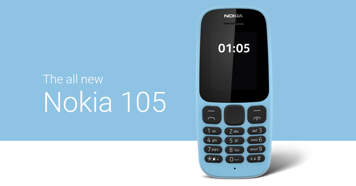 Nokia 105 (2017) ฟีเจอร์โฟนรุ่นล่าสุดจาก HMD Global สำหรับโทรศัพท์มือถือรุ่นนี้มีการใช้ชื่อรหัส Nokia 105 เป็นครั้งที่ 3 แล้ว โดยครั้งแรกเปิดตัวเมื่อปี 2013 และครั้งที่สองภายใต้ความดูแลของ Microsoft เมื่อปี 2015 และในปีนี้ก็ยังคงเป็นฟีเจอร์โฟนเช่นเคย