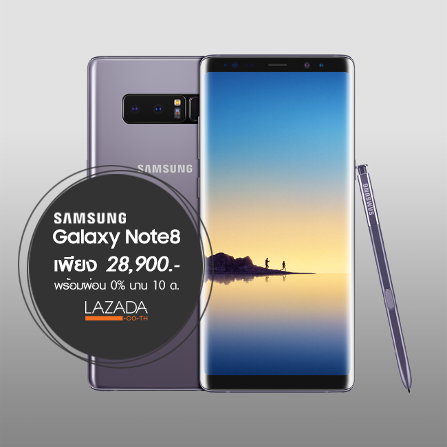 นับว่ากระแสตอบรับดีมาก ๆ สำหรับสมาร์ทโฟน Samsung Galaxy Note 8 ล่าสุด ลาซาด้า จัดโปรโมชั่นลดราคาสุดแรง เหลือเพียง 28,900 บาทเท่านั้น (ราคาปกติ 33,900 บาท) ลดราคาแรงกว่างาน Thailand Mobile EXPO 2017 ครั้งที่ผ่านมาเสียอีก พร้อมให้เป็นเจ้าของได้ง่าย ๆ ด้วยผ่อนสบาย 0% นาน 10 เดือน กับบัตรเครดิตที่ร่วมรายการ พร้อมมีให้เลือกครบทุกสี ไม่ว่าจะเป็น Maple Gold, Midnight Black หรือ Orchid Gray