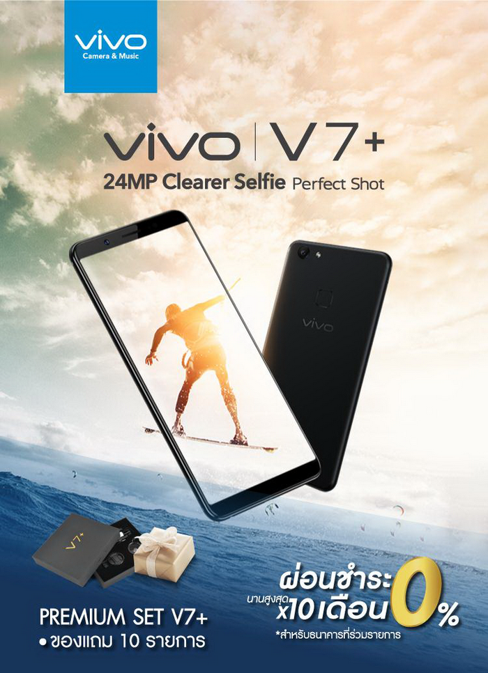 ลาซาด้า จัดโปรโมชั่นสุดพิเศษกับ Vivo V7+ สมาร์ทโฟนหน้าจอไร้ขอบ FullView Display ซื้อวันนี้รับทันทีของแถมกว่า 10 รายการ พร้อมผ่อน 0% นาน 10 เดือน กับธนาคารที่ร่วมรายการ ในราคา 11,990 บาท