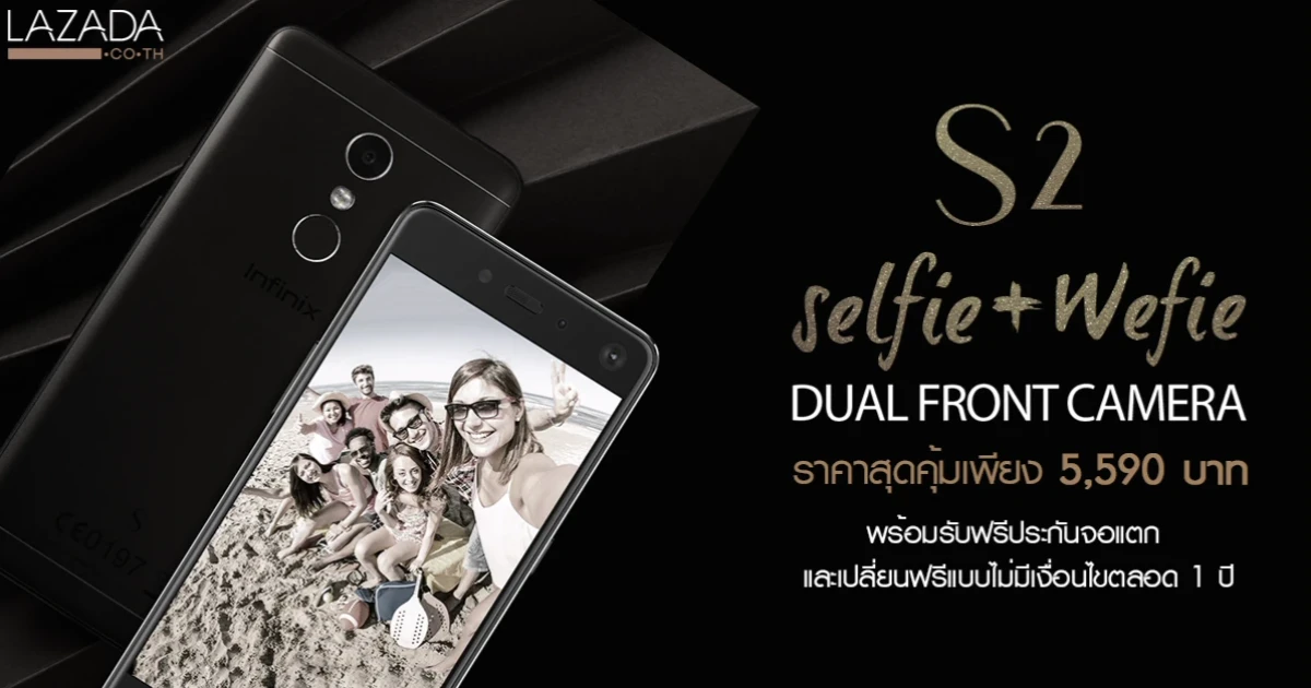 สามารถเป็นเจ้าของ Infinix S2 Pro ได้แล้ววันนี้ ในราคาสุดคุ้ม เพียง 5,590 บาท พร้อมรับฟรีประกันจอแตก และเปลี่ยนให้ฟรีแบบไม่มีเงื่อนไขระยะเวลา 1 ปี พิเศษ! รับเพิ่ม เสื้อยืด 1 ตัว และกระบอกน้ำร้อน-เย็น 1 อัน รวมมูลค่าของแถม 790 บาท ที่ www.lazada.co.th