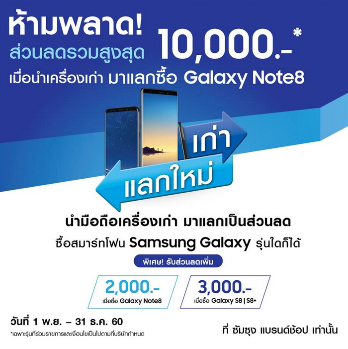 - Samsung Galaxy Note 8 รับส่วนลดเพิ่มจากราคารับซื้อ 2,000 บาท