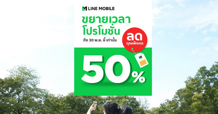 Line Mobile ขยายเวลาลด 50% ทุกแพ็กเกจ นาน 12 รอบบิล จนถึง 30 พ.ย. นี้!