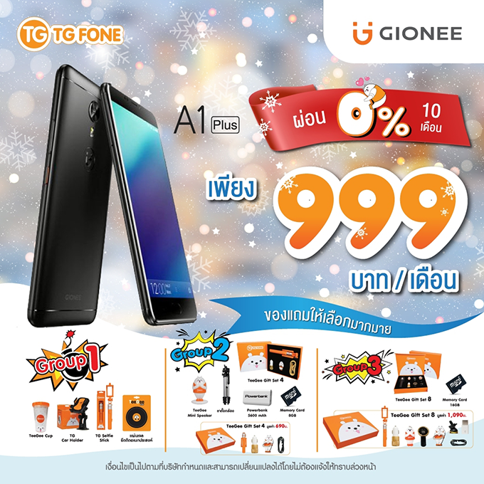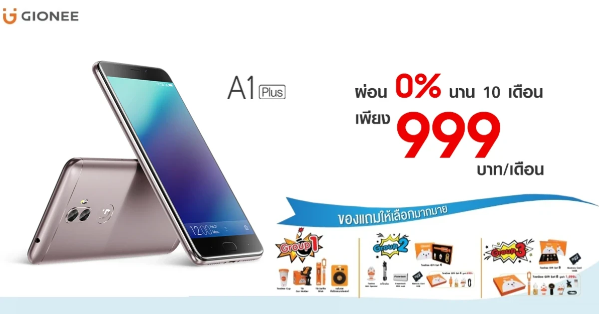 Gionee A1 Plus ผ่อนสบาย 0% นาน 10 เดือน พร้อมรับของแถมอีกมากมาย ที่ร้านทีจี โฟน เท่านั้น