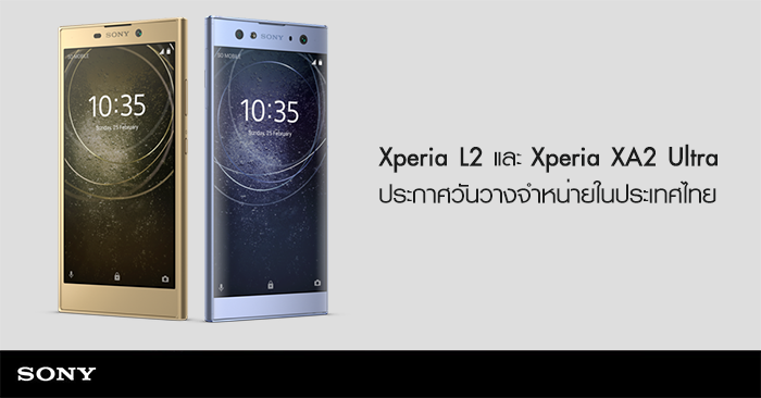 โซนี่ ประเทศไทย ประกาศวันวางจำหน่ายสมาร์ทโฟนรุ่นใหม่ล่าสุดที่เพิ่งเปิดตัว โดย Sony Xperia L2 จะวางในวันที่ 26 ม.ค. นี้ ส่วน Sony Xperia XA2 Ultra อีกหนึ่งรุ่นที่เปิดตัวมาพร้อมกัน จะวางจำหน่ายประมาณช่วงต้นเดือนกุมภาพันธ์