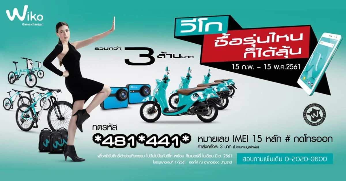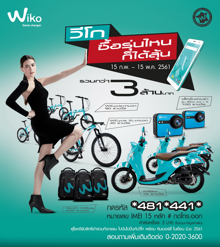 โดยมีกติกาง่ายๆ เมื่อซื้อสมาร์โฟน Wiko ทุกรุ่น กดรหัส *481*441* ตามด้วยหมายเลขเครื่อง (IMEI) 15 หลัก ตามด้วยเครื่องหมาย # แล้วกดโทรออก (ค่าส่งครั้งละ 3 บาท ทุกเครือข่าย) โดยหมายเลขเครื่อง 1 เครื่อง สามารถส่งร่วมรายการได้ 1 ครั้ง ร่วมลุ้นได้ตั้งแต่วันนี้ - 15 พ.ค. 2561