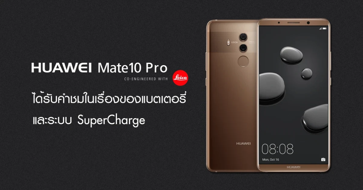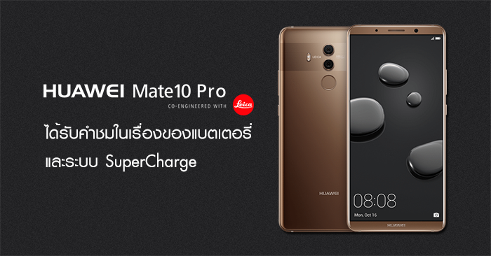 Huawei Mate 10 Pro ได้รับคำชมจากสื่อทั่วโลก ในเรื่องของแบตเตอรี่ และระบบ SuperCharge