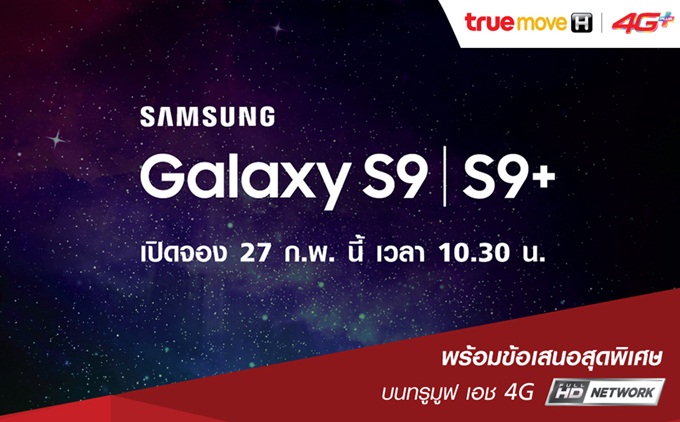 เปิดให้จองได้ตั้งแต่วันที่ 27 ก.พ. - 5 มี.ค. 2561 ทางเว็บไซต์ www.truemoveh.com/galaxys9/pre-order