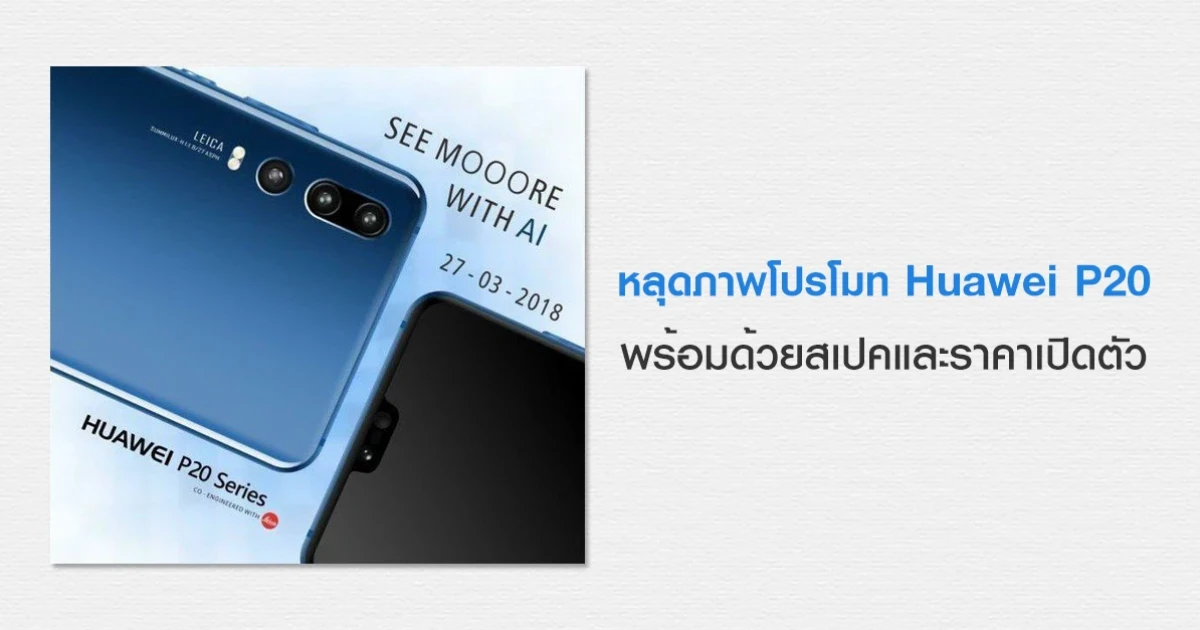 หลุดภาพโปรโมท Huawei P20 พร้อมด้วยสเปคและราคาเปิดตัวแบบหมดเปลือก