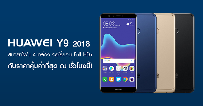 Huawei Y9 2018 สมาร์ทโฟน 4 กล้อง หน้าจอไร้ขอบ Full HD+ กับราคาคุ้มค่าที่สุด ณ ชั่วโมงนี้!