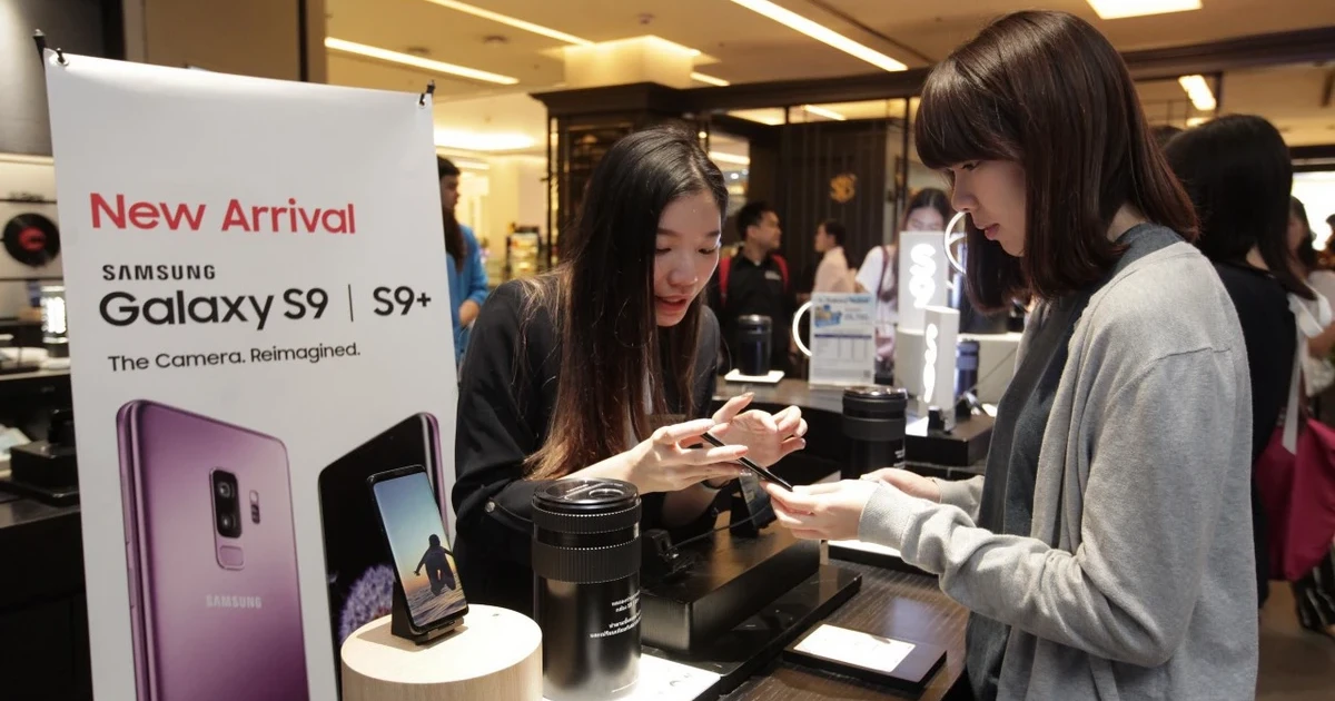 ประเทศไทยปีนี้ได้เป็นกลุ่มประเทศแรกที่เปิดจอง Samsung Galaxy S9 และ Samsung Galaxy S9+ พร้อมรับเครื่องก่อนใคร บรรยากาศการรับเครื่องวันแรกในประเทศไทยเป็นไปอย่างคึกคัก โดย ซัมซุง จัดเตรียมโซนจำลอง "Dual Lighting in You" ให้ผู้บริโภคทดลองสินค้าได้ทันที เพื่อทดสอบประสิทธิภาพของกล้องสมาร์ทโฟนรุ่นใหม่ ทั้งในที่แสงน้อยและที่แสงจ้า โดยผู้บริโภคชาวไทยที่จองและรับเครื่องในวันแรกกลุ่มนี้ ถือเป็นลูกค้ากลุ่มแรกๆ ของโลกที่ได้สัมผัสเครื่องจริงและเป็นเจ้าของก่อนใคร! เป็นภาพบรรยากาศจากร้าน "Samsung Experience Store" ชั้น 3 ศูนย์การค้าสยามพารากอน