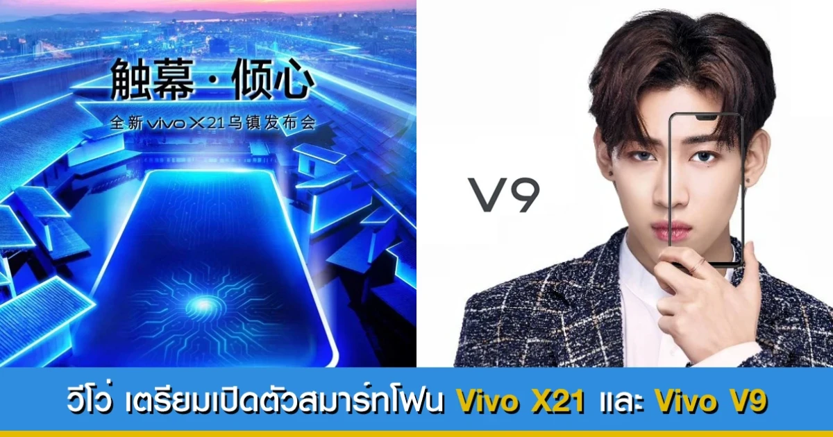 วีโว่ เตรียมเปิดตัวสมาร์ทโฟนรุ่นใหม่ถึง 2 รุ่นด้วยกัน ได้แก่ Vivo X21 สมาร์ทโฟนระดับเรือธง ที่จะเปิดตัวในวันที่ 19 มีนาคมนี้ และ Vivo V9 สมาร์ทโฟนหน้าจอไร้ขอบแบบ FullView ที่เตรียมจะเปิดตัวในวันที่ 21 มีนาคม โดย Vivo V9 จะเป็นรุ่นที่นำเข้ามาทำตลาดในบ้านเราอย่างแน่นอน
