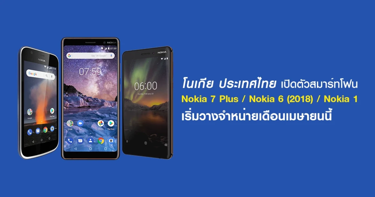 โนเกีย ประเทศไทย เปิดตัว Nokia 7 Plus, Nokia 6 (2018) และ Nokia 1 พร้อมวางจำหน่าย เม.ย. นี้