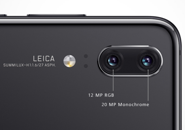 Huawei P20 มาพร้อมชุดกล้องคู่จาก Leica ความละเอียด 12MP F1.8 + 20MP F1.6, ระบบกันสั่น OIS, Optical Zoom 2X, 4-way autofocus (PDAF, laser, contrast และ depth detection), ไฟแฟลชคู่แบบทูโทน, กล้องหน้าความละเอียด 24MP F2.0, บันทึกวีดีโอความละเอียด 4K 30 FPS บันทึก Super Slow Motion 960 FPS บนความละเอียด HD 720P ได้ด้วย