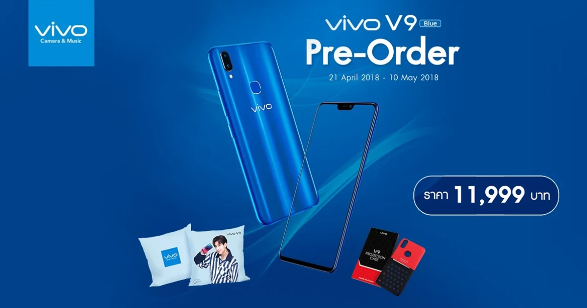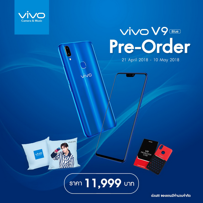 และล่าสุด Vivo เปิดตัวรุ่นพิเศษ Vivo V9 FIFA Blue Edition มาพร้อมด้วยหน้าจอแสดงผล FullView Display สัดส่วนหน้าจอแสดงผลคิดเป็น 90% ของด้านหน้าทั้งหมด ฉลาดด้วยเทคโนโลยี AI ดีไซน์เพรียวบาง โดดเด่นด้วยการถ่ายภาพ และประสิทธิภาพการทำงานที่ดี สำหรับรุ่นพิเศษนี้มีจำนวนจำกัดนะครับ เปิดตัวในราคา 11,999 บาท และเริ่มเปิดจองตั้งแต่วันที่ 21 เมษายน 2561 - 10 พฤษภาคม 2561 เงื่อนไขการจองตามรายละเอียดดังต่อไปนี้