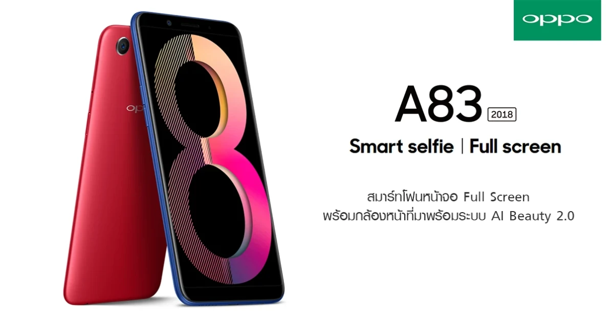 OPPO A83 (2018) สมาร์ทโฟนหน้าจอ Full Screen พร้อมกล้องหน้าที่มาพร้อมระบบ AI Beauty 2.0