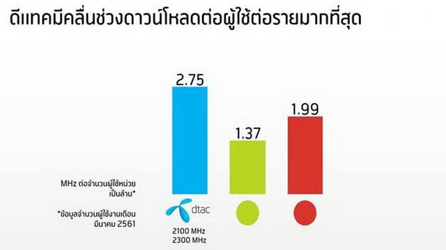 ทั้งนี้ คลื่น 2300 MHz ได้ถูกนำมาให้บริการ 4G TDD เพื่อตอบสนองการใช้งานดาต้าที่เน้นการดาวน์โหลด สอดคล้องกับพฤติกรรมลูกค้าที่หันมานิยมการรับชมวิดีโอผ่านสมาร์ทโฟนจำนวนหลายชั่วโมงต่อวัน ถึงแม้ว่าดีแทคจะสิ้นสุดสัมปทานคลื่น 1800 MHz และ 850 MHz ดีแทคยังมีปริมาณคลื่นความถี่ที่จะให้บริการต่อจำนวนลูกค้ามากกว่าผู้ประกอบการรายอื่น (ดีแทคมีจำนวนคลื่นเฉลี่ย 2.75 MHz ต่อจำนวนลูกค้า 1 ล้านราย ในขณะผู้ให้บริการรายอื่นมีจำนวน 1.37 MHz และ 1.99 MHz)