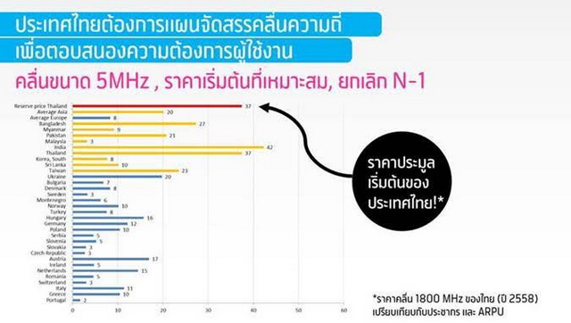 นอกจากนี้ ประเทศไทยยังติดกับดักต้นทุนของคลื่นความถี่ที่สูงระดับโลก เมื่อรวมกับข้อกำหนดกรณีผู้เข้าร่วมประมูลมีจำนวนเท่ากับหรือน้อยกว่าจำนวนใบอนุญาต หรือ N-1 จะนำประเทศไปสู่สภาวะขาดคลื่นความถี่เพื่อนำมาใช้งาน เมื่อเปรียบเทียบกับประเทศในภูมิภาคเดียวกัน ประเทศไทยจ่ายค่าบริการอินเทอร์เน็ตที่สูงกว่าแต่กลับได้ใช้งานความเร็วอินเทอร์เน็ตที่ช้ากว่าประเทศอื่น การตั้งหลักเกณฑ์ที่ไม่เหมาะสมจะนำไปสู่ภาวะการขาดแคลนคลื่นความถี่ในการพัฒนาโครงสร้างพื้นฐาน การใช้งานอินเทอร์เน็ตที่ช้าลง โดยจะส่งผลเสียต่อภาพรวมในการเปลี่ยนผ่านสู่ดิจิทัลของประเทศไทย