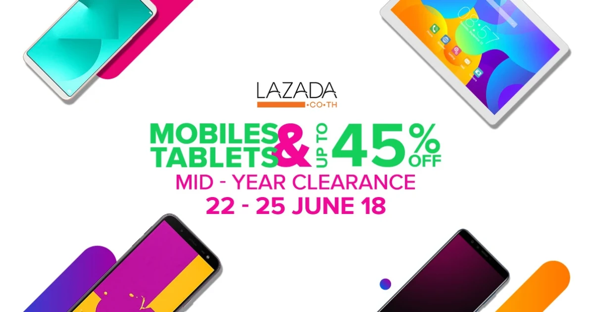 โปรโมชั่นสุดร้อนแรงจาก ลาซาด้า สมาร์ทโฟนและแท็บเล็ตลดราคาสูงสุด 45% ตั้งแต่วันนี้ - 25 มิ.ย. 61