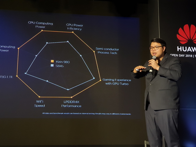 - ด้านประสิทธิภาพ Kirin 980 ขนาด 7 นาโนเมตร ทำให้มีจำนวนทรานซิสเตอร์ต่อพื้นที่บรรจุ 1 ตารางเซ็นติเมตรสูงกว่าชิปเซ็ตรุ่นก่อนถึง 1.6 เท่าจึงส่งผลให้เพิ่มประสิทธิภาพในการทำงานได้ดีกว่า 20% โดยมีอัตราการใช้พลังงานที่ต่ำลงถึง 40% เมื่อเทียบกับชิปเซ็ตขนาด 10 นาโนเมตร นอกจากนี้ด้วยเทคโนโลยี AI จึงทำให้ Kirin 980 สามารถจัดสรรทรัพยากรให้เหมาะสมกับการประมวลผลการทำงานของแอพพลิเคชั่นต่างๆ รวมถึงควบคุมความเร็ว Clock Speed ที่สูงกว่าชิปเซ็ตรุ่นก่อนหน้า ทำให้สามารถเปิดแอพลิเคชั่นได้เร็วกว่า ทำงาน Multitasking ได้ดีกว่า และมีความไหลลื่นในการใช้งานมากกว่า นอกจากนี้ยังมีการติดตั้งชิปประมวลผลกราฟฟิก Mali-G76 GPU ไว้ใน Kirin 980 เป็นครั้งแรก เพื่อให้ผู้ใช้ได้รับประสบการณ์การเล่นเกมที่เหนือชั้น ซึ่งมีความเร็วในการประมวลผลกราฟฟิกสูงกว่าเดิม 46% และใช้พลังงานน้อยลงถึง 178% เมื่อเทียบกับรุ่นก่อน