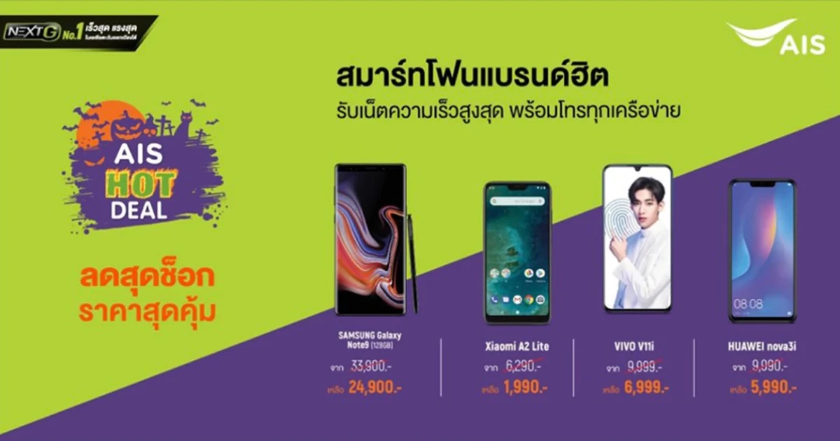 AIS Hot Deal สมาร์ทโฟนแบรนด์ฮิต ลดราคาพิเศษสุดคุ้ม! วันนี้ - 31 ต.ค. 61