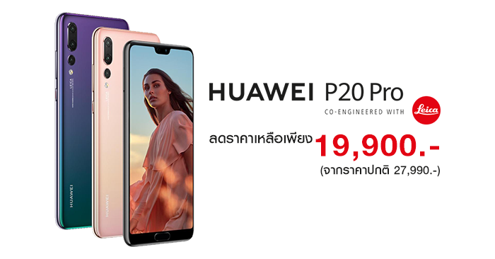 Huawei P20 Pro สมาร์ทโฟนกล้องดีที่สุดในโลกจาก หัวเว่ย ล่าสุดลดราคาเหลือเพียง 19,900 บาท (จากราคาปกติ 27,990 บาท) พร้อมมีให้เลือกครบทุกสี ไม่ว่าจะเป็น Graphite Black, Midnight Blue และ Twilight ใครที่สนใจอยู่ไม่ควรพลาด (จัดจำหน่ายโดย Center Phone บนเว็บไซต์ Shopee)
