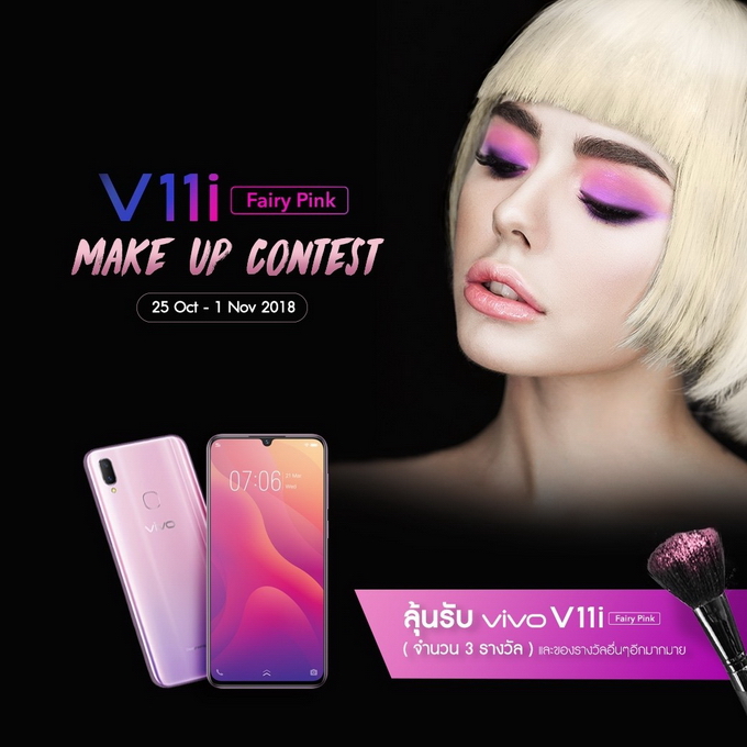โดยในวันนี้ Vivo ชวนมาแต่งหน้าเปลี่ยนโลกให้เป็นสีชมพู กับกิจกรรมที่มีชื่อว่า "Vivo V11i Fairy Pink Makeup Contest" ไม่ว่าการแต่งหน้าในสไตล์ Fairy Pink ของคุณเป็นแบบไหน ถ่ายภาพมาแชร์กับเราแล้วลุ้นรับ Vivo V11i Fairy Pink จำนวน 3 รางวัล และของรางวัลอื่นๆ อีกมากมาย
