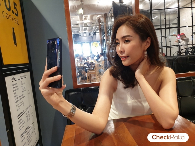 - กล้องหน้าความละเอียด 16MP F2.0 มาพร้อม AI Beauty ที่มีการจัดการความงามส่วนบุคคลมากกว่า 8 ล้านแบบ ใช้ได้มากกว่า 1000 ใบหน้า ช่วยให้ภาพเซลฟี่สวยงามและดูเป็นธรรมชาติตามแบบฉบับของบุคคล