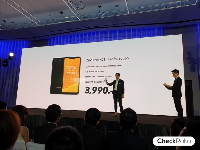 แบรนด์สมาร์ทโฟนน้องใหม่ไฟแรง ประกาศแถลงข่าวงานเปิดตัว แบรนด์ Realme อย่างเป็นทางการครั้งแรกในประเทศไทย โดยเปิดตัวสมาร์ทโฟน Realme C1 (เรียลมี ซีวัน) รุ่นใหม่ล่าสุด ภายใต้สโลแกน "Proud To Be Young" ซึ่งถือเป็นสมาร์ทโฟนน้องเล็กสเปกคุ้ม รุ่นที่สองที่เข้ามาวางจำหน่ายในไทย