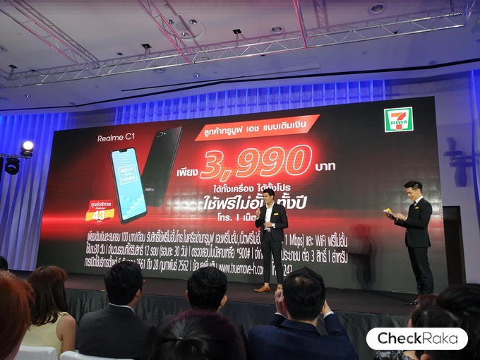 - Realme C1 เปิดจำหน่ายในราคาเพียง 3,990 บาท เท่านั้น หาซื้อได้ที่ 7-11 ทุกสาขาใกล้บ้านคุณ ตั้งแต่ 6 ธันวาคมนี้ เป็นต้นไป พิเศษ สำหรับ ลูกค้าทรูมูฟเอช แบบเติมเงิน ซื้อ Realme C1 ได้ทั้งเครื่อง ได้ทั้งโปร รับสิทธิ์ โทรฟรี เน็ตฟรี wifi ฟรี (โปรเด็ดเติมเงินเดือนละร้อย ใช้เน็ตฟรีความเร็ว 1 Mbps และโทรฟรีในเครือข่าย)