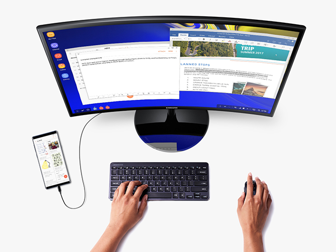 Samsung DeX มอบประสบการณ์ใช้งานเสมือนคอมพิวเตอร์ตั้งโต๊ะผ่านการใช้งานโทรศัพท์ เพียงเชื่อมต่อโทรศัพท์เข้ากับหน้าจอแสดงผลภายนอกหรือเปลี่ยนการตั้งค่าบน Samsung Galaxy Tab S4 ช่วยให้ผู้ใช้สามารถใช้โทรศัพท์หรือแท็บเล็ตเป็นแป้นพิมพ์สัมผัสหรือคีย์แพดสัมผัสได้ มาพร้อมโหมดการทำงานแบบดูอัล (dual mode) จึงสามารถใช้โทรศัพท์หรือแท็บเล็ตขณะทำงานกับหน้าจอแสดงผลภายนอก ไม่ว่าจะเป็นการพูดคุยทางวีดีโอ หรือการวาดรูปและจดบันทึก ผู้ใช้ Samsung Galaxy Note 9 สามารถใช้งาน S Pen เพื่อการเลื่อนสไลด์ขณะที่ยังอยู่ในโหมดเด็กซ์ที่แสดงผลบนหน้าจอใหญ่