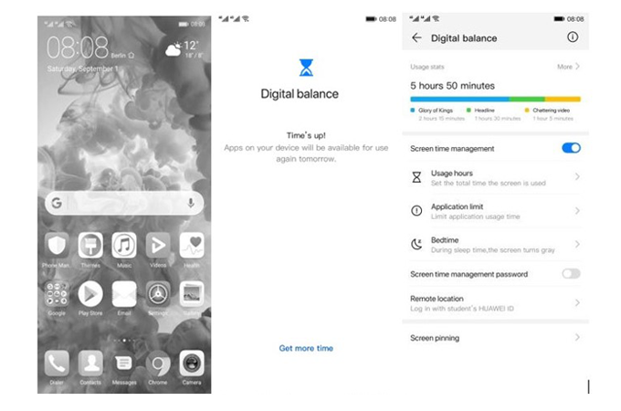 - บาลานซ์ชีวิตบนโลกดิจิทัลด้วยฟีเจอร์ Digital Balance ที่จะช่วยบริหารเวลาการใช้งานสมาร์ทโฟนในแต่ละวัน ว่าในหนึ่งวันเปิดแอพพลิเคชั่นใดบ้าง เป็นเวลากี่ชั่วโมง โดยผู้ใช้สามารถจำกัดเวลาการใช้แอพฯ บางแอพฯ ได้ เช่น ผู้ปกครองสามารถจำกัดเวลาการเล่นเกมของเด็ก ๆ ได้วันละ 2 ชั่วโมงจากนั้นแอพฯ จะปิดเพื่อให้เด็ก ๆ ไปทำกิจกรรมสนุก ๆ อย่างอื่นนอกบ้าน รวมถึงสมาร์ทโฟนสามารถเปลี่ยนหน้าจอเป็นสีเทาเพื่อเตือนเราว่าได้เวลาเข้านอนแล้วอีกด้วย