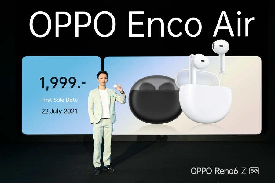 พร้อมกันนี้ออปโป้ ไทยแลนด์ ยังได้เปิดตัวหูฟัง OPPO Enco Air หูฟังไร้สายรุ่นล่าสุด ส่งมอบนวัตกรรม IoT คู่หูเพื่อชีวิตแบบสมาร์ทไลฟ์ ภายใต้แนวคิด "Sound You Can See" สู่ประสบการณ์แห่งเสียงที่สัมผัสได้ มาในดีไซน์ที่ไร้กฎเกณฑ์ด้วยเคสชาร์จแบบโปร่งแสง จัดเต็มระบบเสียงที่ใส ชัดเจน ทรงพลัง และคมชัดทุกมิติ พร้อมให้ใช้งานได้ยาวนาน ชาร์จเร็ว และเชื่อมต่อได้เสถียร ในราคา 1,999 บาท