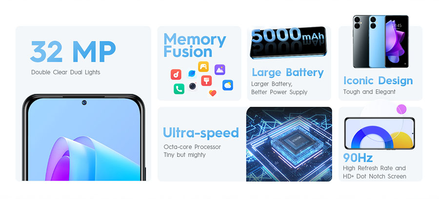 ไฮไลท์ TECNO SPARK 9T กล้องหน้าความละเอียด 32MP เซลฟี่สุดคมชัด