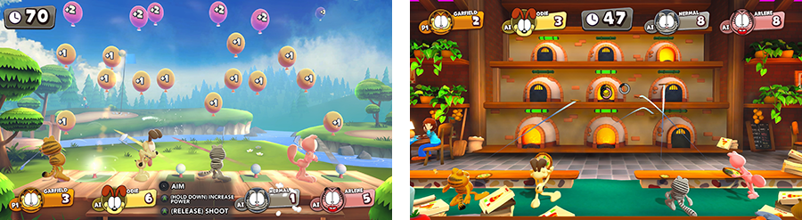 - มินิเกมมากว่า 30+ ในสภาพแวดล้อมที่ถูกใจทาสของ Garfield เช่น บ้านของ Jon, ร้าน pizzeria หรือคลินิกสัตล์เลี้ยงของ Dr. Liz