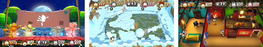- เล่นเป็น 4 ตัวละครหลักประจำซีรีส์ จากหนักสือการ์ตูนของ Jim Davis: Garfield, Nermal, Arlene & Odie!