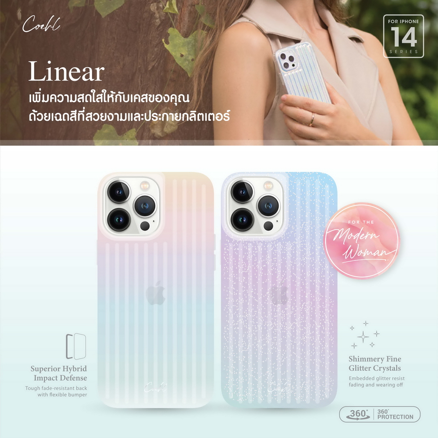 ควงคู่มากับผลิตภัณฑ์เคสที่ผสมผสานความสวยงามและฟังก์ชันการใช้งาน ซึ่งมีด้วยกันทั้งหมด 7 รุ่นจากแบรนด์ COEHL by UNIQ ได้แก่ รุ่น Linear, รุ่น Terrazzo, รุ่น Palette, รุ่น Meadow, รุ่น Aster, รุ่น Solitaire และ รุ่น Lumino ซึ่งเป็นคอลเลคชั่นพิเศษที่ได้รับแรงบันดาลใจมาจากแนวความคิดที่ว่าผู้หญิงเป็นเพศที่อ่อนไหวและมีหลากหลายแง่มุมให้น่าค้นหาเช่นเดียวกับธรรมชาติ โดยทั้ง 2 คอลเลคชั่นนี้มาพร้อมกับดีไซน์ที่เพรียวบาง ทันสมัย รวมถึงความสามารถในการรองรับแรงกระแทกได้อย่างมีประสิทธิภาพ ตอบโจทย์ความต้องการของสาวกไอโฟนได้เป็นอย่างดี