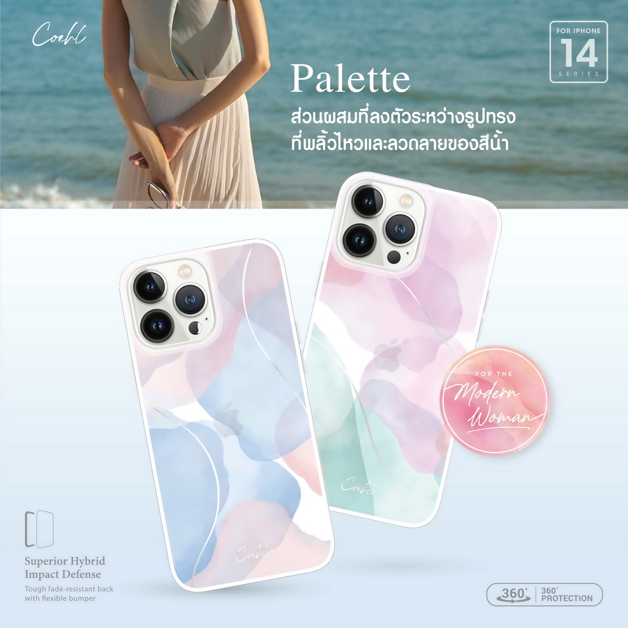 รุ่น Palette เคสโปร่งแสงที่โดดเด่นด้วยลายเส้นที่พลิ้วไหวและลวดลายของสีน้ำ มาพร้อมดีไซน์เพรียวบางผลิตจากวัสดุ IML TPU COEHL by UNIQ รุ่น Palette มี 2 สี ได้แก่ สี SOFT LILAC และ สี DUSK BLUE วางจำหน่ายในราคา 890 บาท