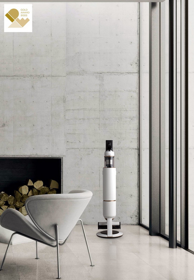 เครื่องดูดฝุ่นไร้สาย Bespoke Jet™ แบบด้ามจับพร้อมด้วยฐาน Clean Station™ ครบถ้วนในหนึ่งเดียว ยังได้รับรางวัลระดับโกลด์ เนื่องจากความเป็นเลิศในการออกแบบด้วยเช่นกัน ผลิตภัณฑ์นี้จะมอบประสบการณ์ที่พิเศษเฉพาะตัว ครอบคลุมอย่างครบถ้วนทั้งกระบวนการ ตั้งแต่การทำความสะอาดและการทิ้งฝุ่นไปจนถึงการจัดเก็บ โดยหลังจากที่วางตัวเครื่องดูดฝุ่นไว้บนฐาน Clean Station™ แล้ว ผู้ใช้งานสามารถทิ้งฝุ่นในกล่องเก็บฝุ่นได้อย่างง่ายดาย โดยการกดปุ่มเพียงปุ่มเดียว จึงช่วยให้พื้นที่และอากาศในบ้านคงความสดชื่นและสะอาดไร้ฝุ่นได้เป็นอย่างดี นอกจากนี้ยังมั่นใจได้ว่า ดีไซน์แบบ All-in-one ของ Bespoke Jet จะมอบความสะดวกสบายที่ดูดีมีสไตล์ เหมาะสมกับพื้นที่เพื่อการอยู่อาศัยทุกรูปแบบอีกด้วย