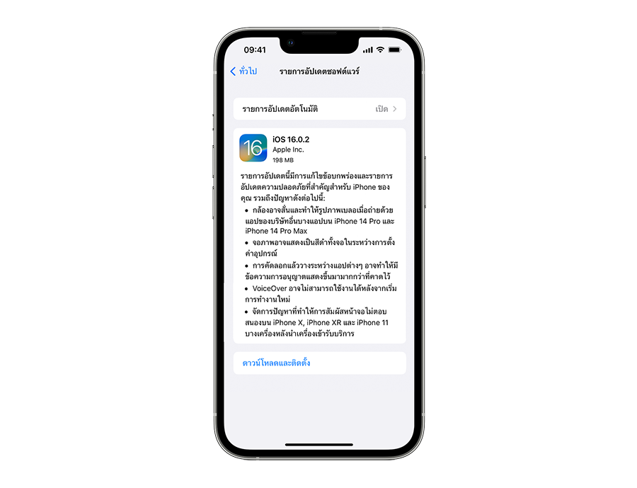 รายละเอียดการอัปเดตซอฟท์แวร์ iOS 16.0.2