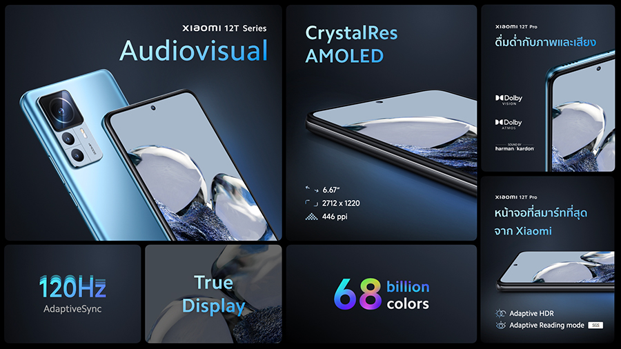 นอกจากนี้ ผู้ใช้ยังสัมผัสกับประสบการณ์การรับชมแบบจุใจเต็มตาไปกับหน้าจอแสดงผลแบบ CrystalRes AMOLED ขนาด 6.67 นิ้ว บน Xiaomi 12T Series ที่มีความละเอียดถึง 1220p และสีมากกว่า 68 พันล้านสี สมาร์ทโฟนทั้งสองรุ่นนั้นได้รับการออกแบบมาอย่างสมบูรณ์แบบเพื่อให้เกิดสมดุลระหว่างความคมชัด เก็บทุกรายละเอียดแห่งสีสัน และประสิทธิภาพการใช้พลังงาน หน้าจอแสดงผลยังได้รับการปรับปรุงด้วยคุณสมบัติอัจฉริยะ เช่น AdaptiveSync ซึ่งสามารถปรับอัตราการรีเฟรชแบบไดนามิกตามเนื้อหาที่รับชม และ Xiaomi 12T Series ยังเต็มไปด้วยการออกแบบระดับพรีเมียมอันเป็นเอกลักษณ์ ด้านหลังโค้งมนช่วยลดรอยนิ้วมือที่พื้นผิวด้านหลัง พร้อมสัมผัสที่กระชับมือทั้งด้านหน้า ด้านหลัง และจากบนลงล่าง นี่คือสุดยอดของการออกแบบเรือธงที่สมบูรณ์แบบ