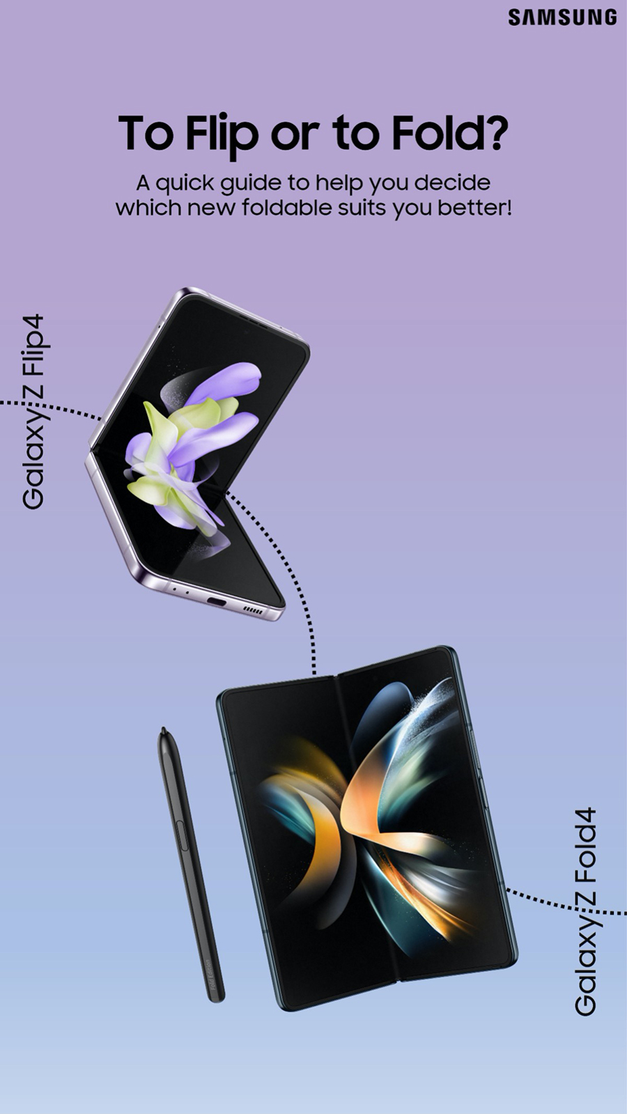 หากกำลังมองหาสมาร์ทโฟนที่รูปลักษณ์ไม่เหมือนใคร และช่วยเติมเต็มประสบการณ์และไลฟ์สไตล์ได้ถึงขีดสุด ไม่มีสมาร์ทโฟนรุ่นไหนจะตอบโจทย์ได้ดีไปกว่า Galaxy Flip4 และ Z Fold4 จากซัมซุง สมาร์ทโฟนจอพับได้ 2 รุ่นล่าสุดที่ทลายข้อจำกัดเดิมๆ และมอบประสิทธิภาพ ความทนทาน และประสบการณ์ที่ปรับแต่งมาเพื่อช่วยให้ทุกคนทำงานและยังเล่นสนุกได้ดีกว่าเดิม