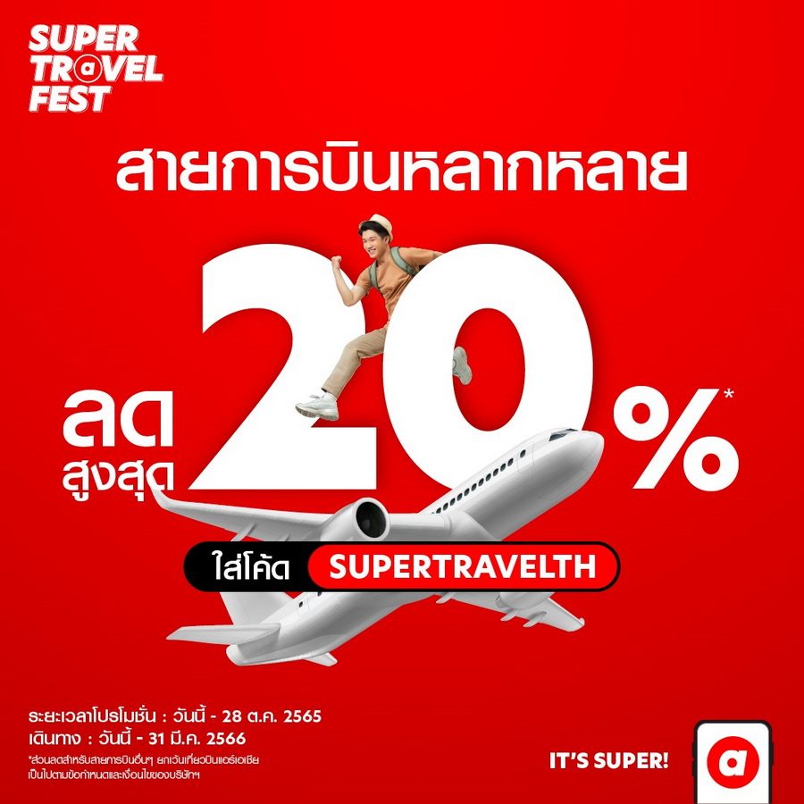 เนื่องในโอกาสสำคัญนี้ airasia Super App ได้จัดแคมเปญ “SUPER Travel Fest” กลับมาเอาใจสายเที่ยวอีกครั้งพร้อมข้อเสนอการเดินทางที่ยิ่งใหญ่และคุ้มสะใจยิ่งกว่าสำหรับทุกคน ตั้งแต่วันที่ 26 - 28 ตุลาคม 2565 นี้เท่านั้น