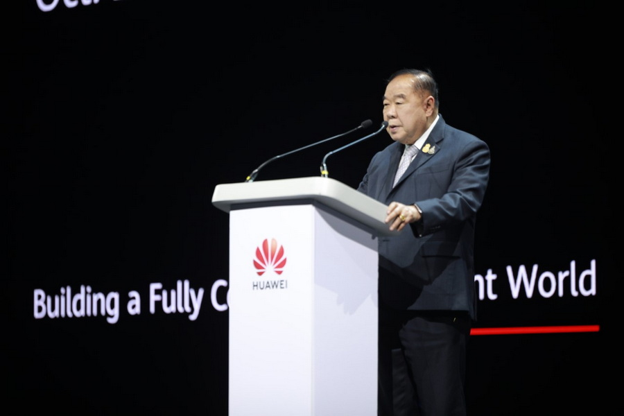 นายเคน หู ประธานกรรมการบริหารแบบหมุนเวียนตามวาระของหัวเว่ย ร่วมกล่าวสุนทรพจน์ในงาน MBBF