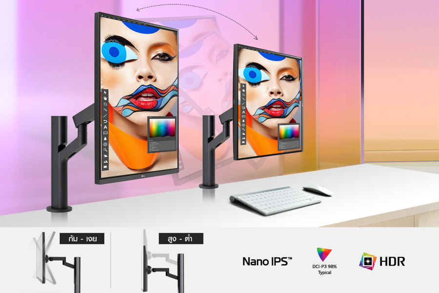 Workstation ที่ดีช่วยเพิ่มประสิทธิภาพให้กับการทำงาน และทำให้มีสมาธิอยู่กับหน้าจอได้นานขึ้น โดยปัจจุบันมีจอมอนิเตอร์รุ่นใหม่ที่อำนวยความสะดวกในการทำงานให้กับครีเอเตอร์ และติดตั้งง่ายด้วยขาตั้ง Ergo แบบเสา ประหยัดพื้นที่การติดตั้งมากขึ้นโดยใช้ตัวยึดแบบ C-Clamp ที่ปรับเข้ากับความหนาของโต๊ะทุกแบบ โดยสามารถปรับยืด หด หมุนตำแหน่งให้เหมาะกับความต้องการได้ ความโดดเด่นของจอมอนิเตอร์ที่มาพร้อมขาตั้ง Ergo คือผู้ใช้สามารถเก็บสายไฟ เข้าไปในขาตั้งและอาร์มของหน้าจอเพื่อความเป็นระเบียบเรียบร้อยและเพิ่มพื้นที่บนโต๊ะทำงาน นอกจากนี้ จอมอนิเตอร์รุ่นใหม่ๆ ที่ออกแบบมาโดยคำนึงถึงสรีรศาสตร์ ยังมีลูกเล่นในการปรับระยะมองจอได้อย่างอิสระ ทั้งระยะใกล้-ไกล สูง-ต่ำจากสายตา ปรับหมุนหน้าจอให้หันไปด้านข้างเพื่อโชว์ผลงานให้กับคนที่นั่งอยู่อีกฝั่ง หรือจะปรับเอียงหน้าจอให้อยู่ในแนวนอนก็สามารถทำได้เช่นกัน